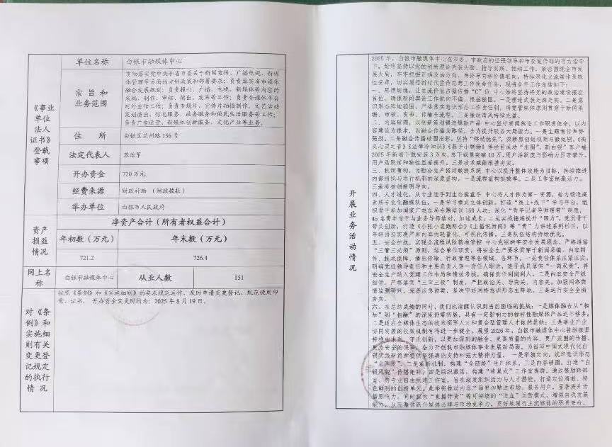 事業(yè)單位法人年度報告書